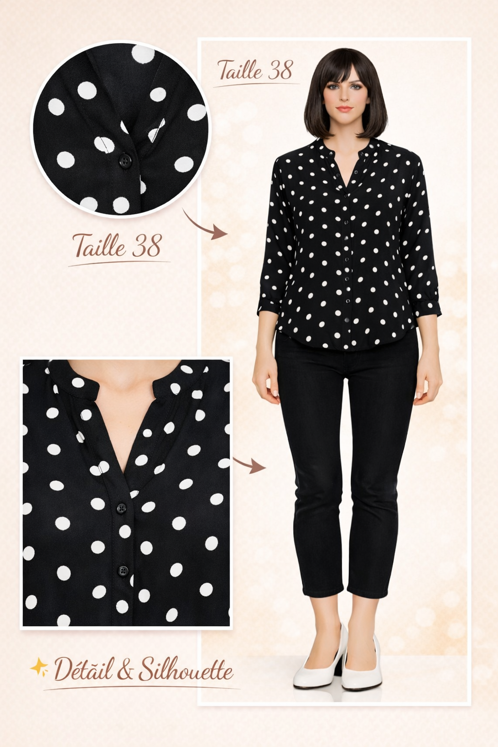 Couleur : Noir a pois blanc / Taille : 38